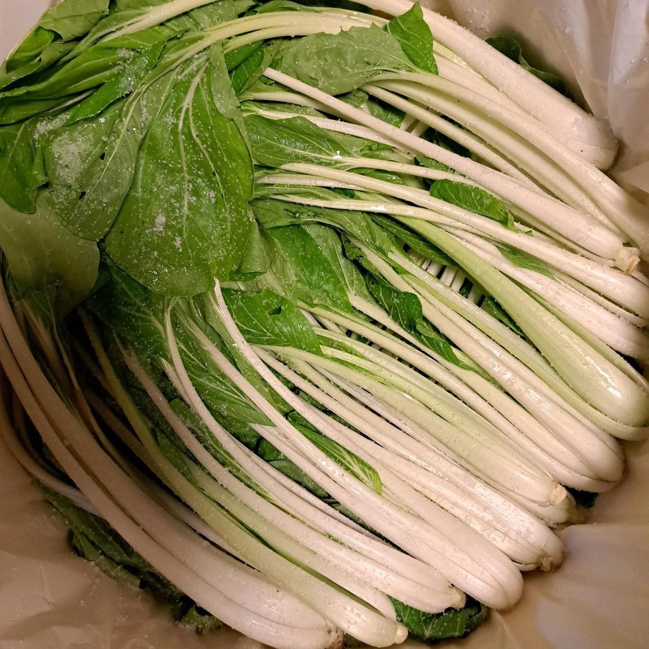 たいさい(体菜)、漬け物に向く菜っ葉です。白く太い軸が長く、この形からしゃくしな(杓子菜)とも呼ばれます。
